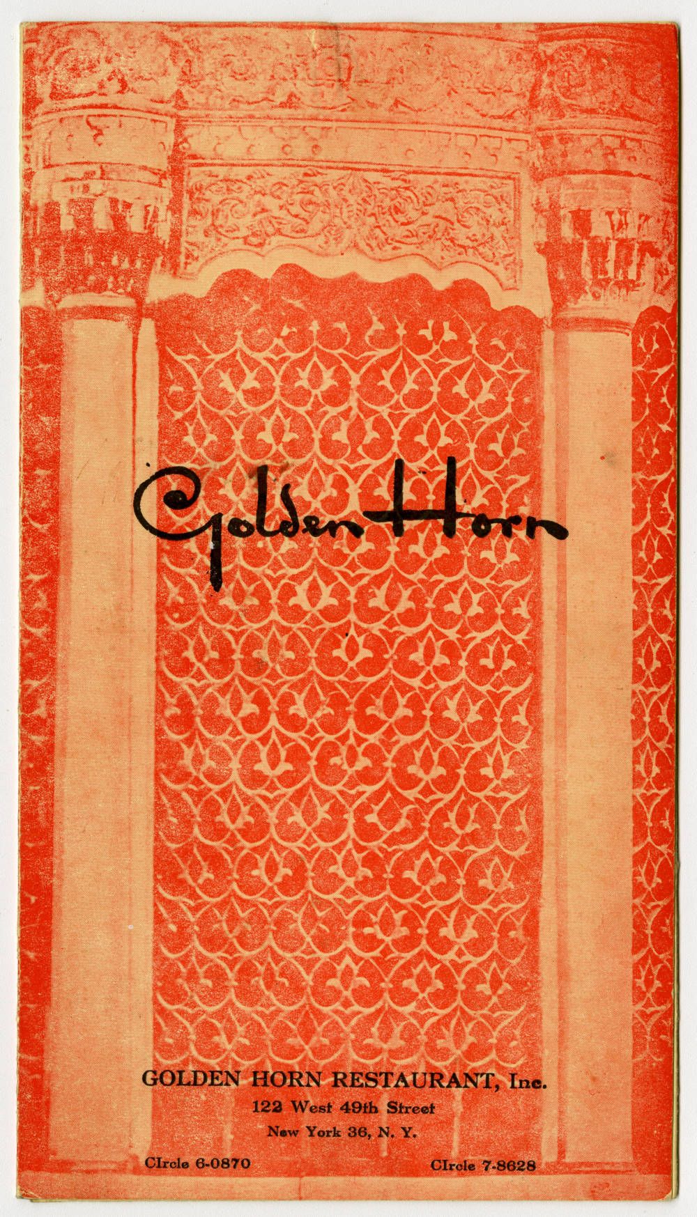 Opened in 1934, The Golden Horn was operated by In 1934, Aram Salisian opened the Golden Horn Restaurant at 31 W. 51st Street in New York, directly opposite the stage entrance of the New York City Music Hall. The Golden Horn was one of the earliest Armenian restaurants in American, along with places like Dardenelles and Ararat in and around New York City. The restaurant was renowned, especially for its desserts such as ekmek kadayif and paklava. Gourmet Magazine included it in its list of 100 Best Restaurants. Author William Saroyan, a frequent visitor to New York, ate at The Golden Horn several times, at least once bringing famed Hollywood director Rouben Mamoulian with him. He often took his then-girlfriend, and later wife, Carol Marcus to The Golden Horn in the early days of their relationship. The restaurant moved over the years, including to 122 West 49th.